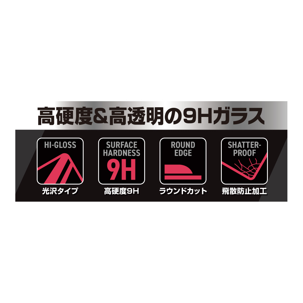 ●高硬度9Hガラス素材で、キズや衝撃から画面を保護するガラスフィルターです。