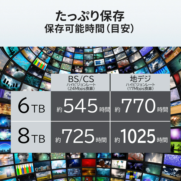 ハイビジョン番組をたっぷり保存。お好みの容量からお選びいただけます。