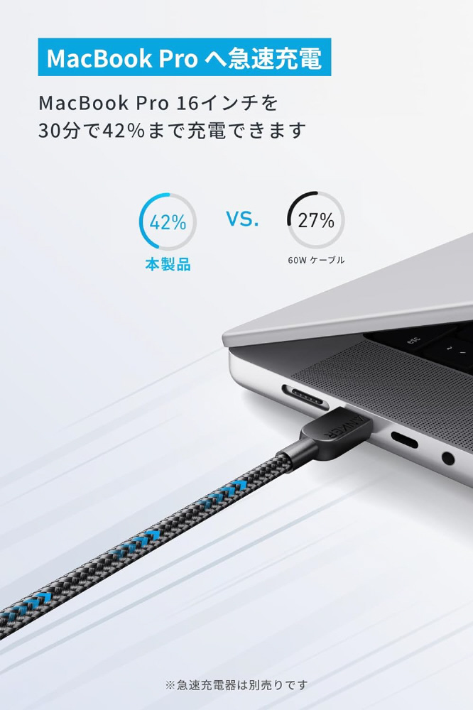 240Wの高出力で高耐久のUSB-C&USB-Cケーブル