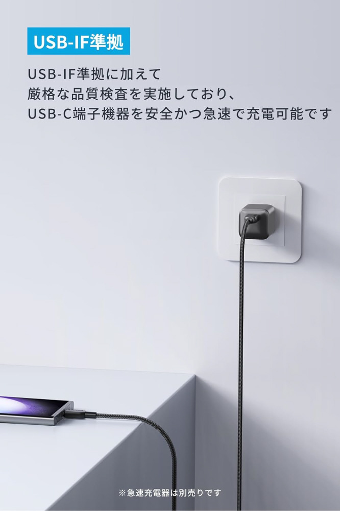Anker USB-C & USB-C ケーブル (高耐久ナイロン) 1.8m