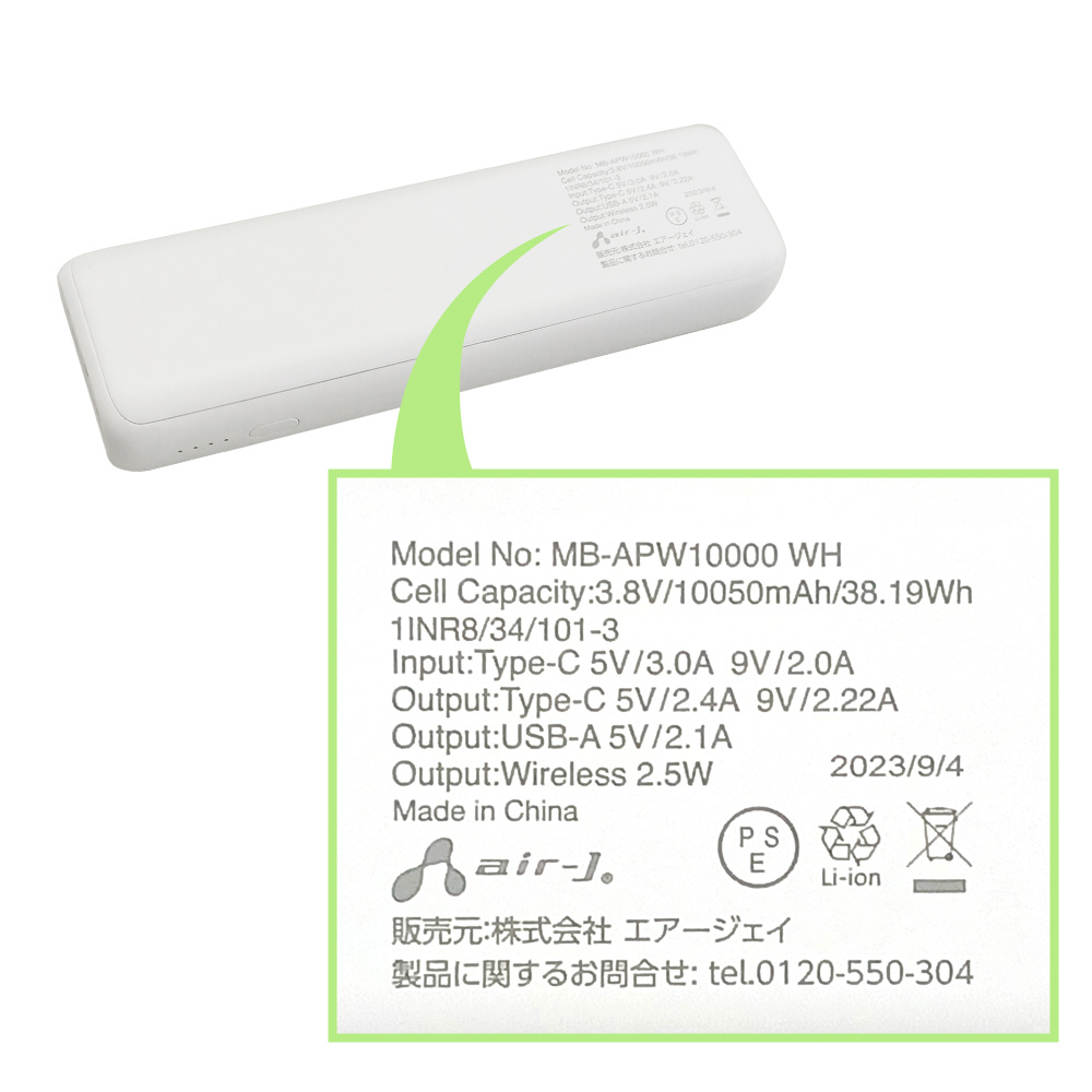 Applewatchモジュール付きモバイルバッテリー10050mA MBAPW10000WH