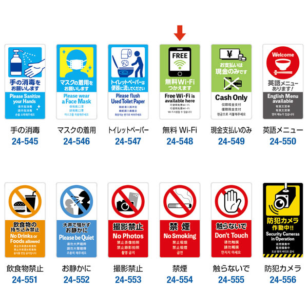商品名 | 注意喚起ステッカー 無料Wi-Fi 24-548 |
