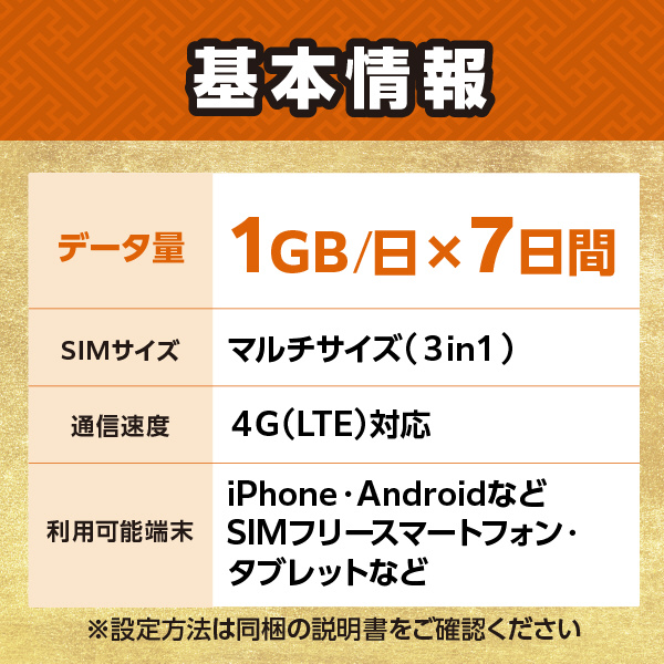 Tourist SIM for Japan 1GB/日 7日間 [プリペイド/マルチSIM /SMS非対応] 【sof001】