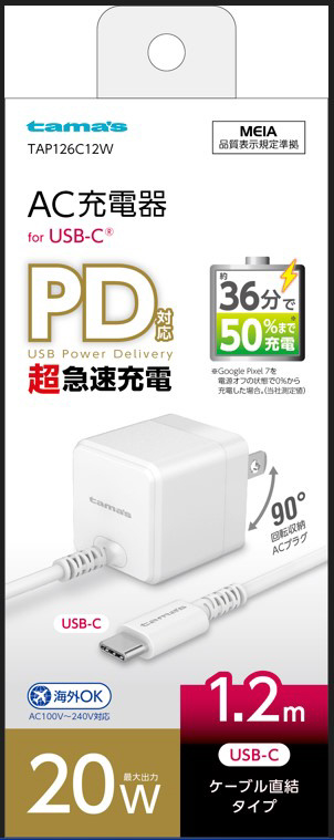 | 商品名 | PD20W USB-C コンセントチャージャー ホワイト TAP126C12W [USB Power Delivery対応 /1ポート /20W] |