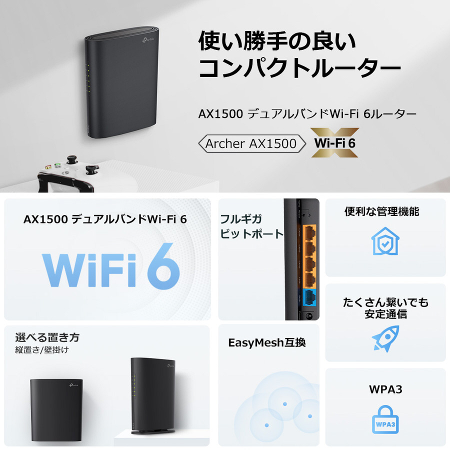 Wi-Fiルーター 1201+300Mbps Archer AX1500 [Wi-Fi 6(ax) /IPv6対応]