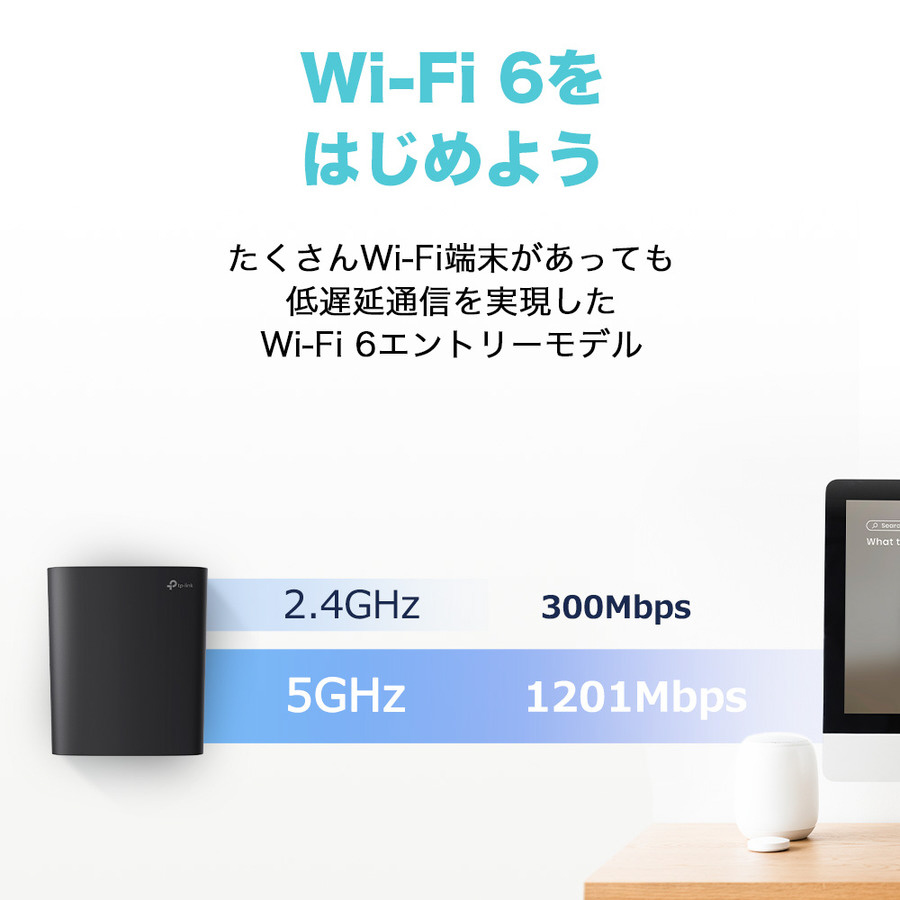 | 無線通信速度 | [Wi-Fi速度]AX1500 5GHz:1201Mbps(802.11ax、HE80) 2.4GHz:300Mbps(802.11n) |