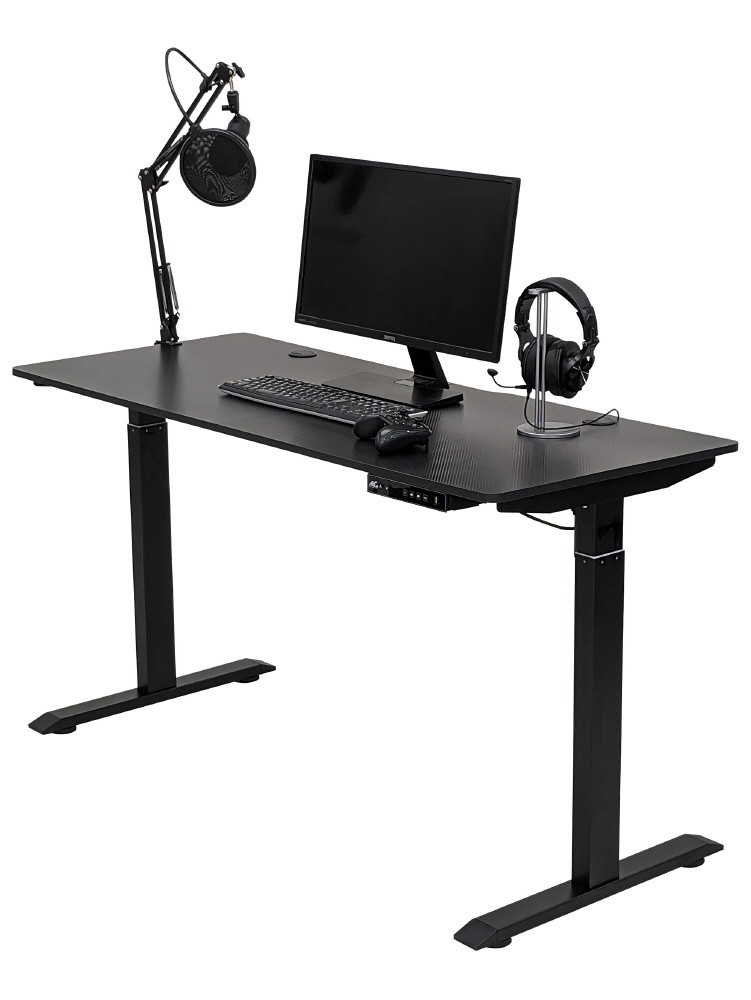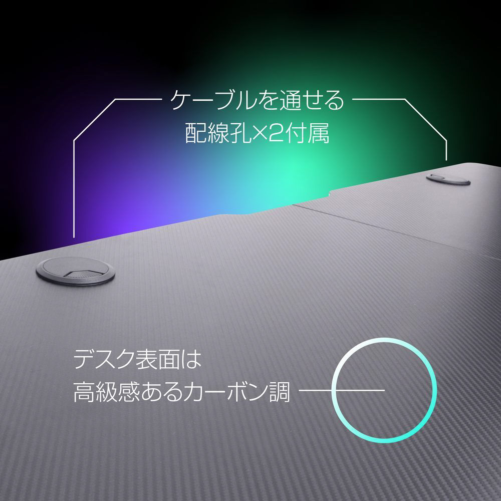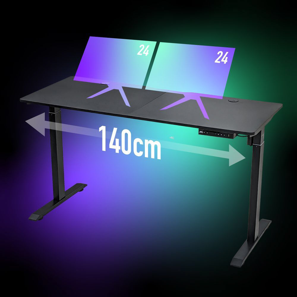 ゲーマーの為のデスク。USBポート付き、ワイドな140cm幅、電動昇降機能ゲーミングデスク。