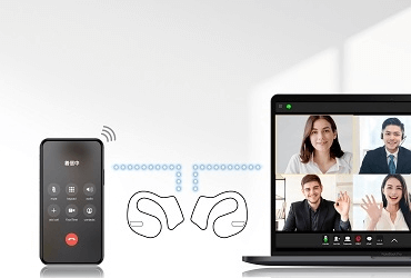 パソコンとスマートフォンなどの2台の機器に同時接続、同時待ち受けが可能なマルチポイントに対応。パソコンでオンライン会議中のスマートフォンの着信通話や、通勤時にスマートフォンで音楽再生、出社後のパソコンでのオンライン会議などでBluetooth接続の切り替え操作なしで使用できます。
