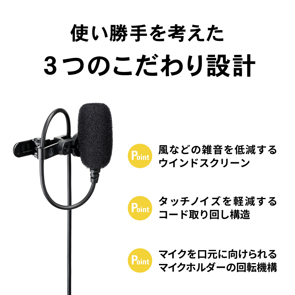 音声を明瞭かつ正確に収音できるラベリアモノラルマイクロホン