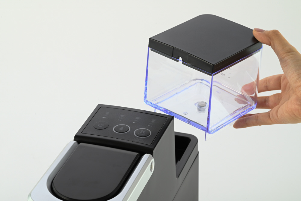 スリムでコンパクト設計。水タンク容量は500ml、約3杯分(140ml抽出の場合)に対応。