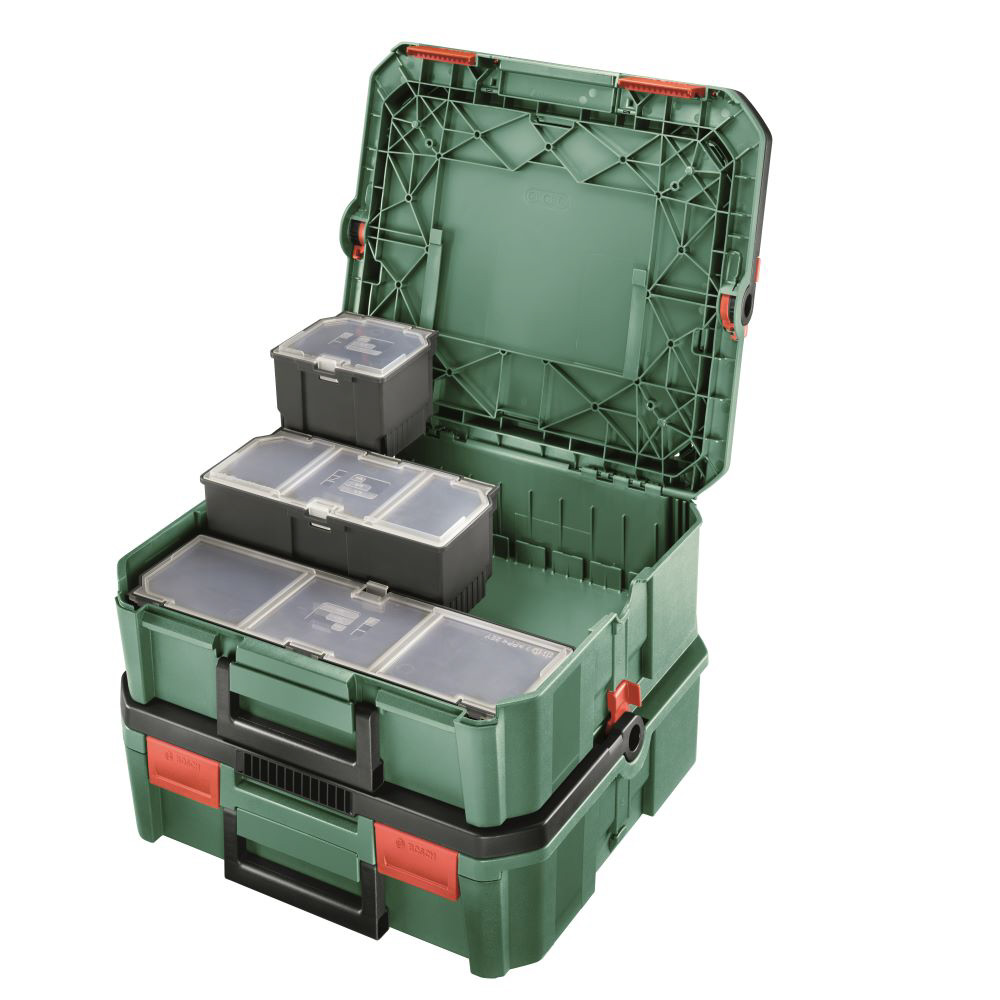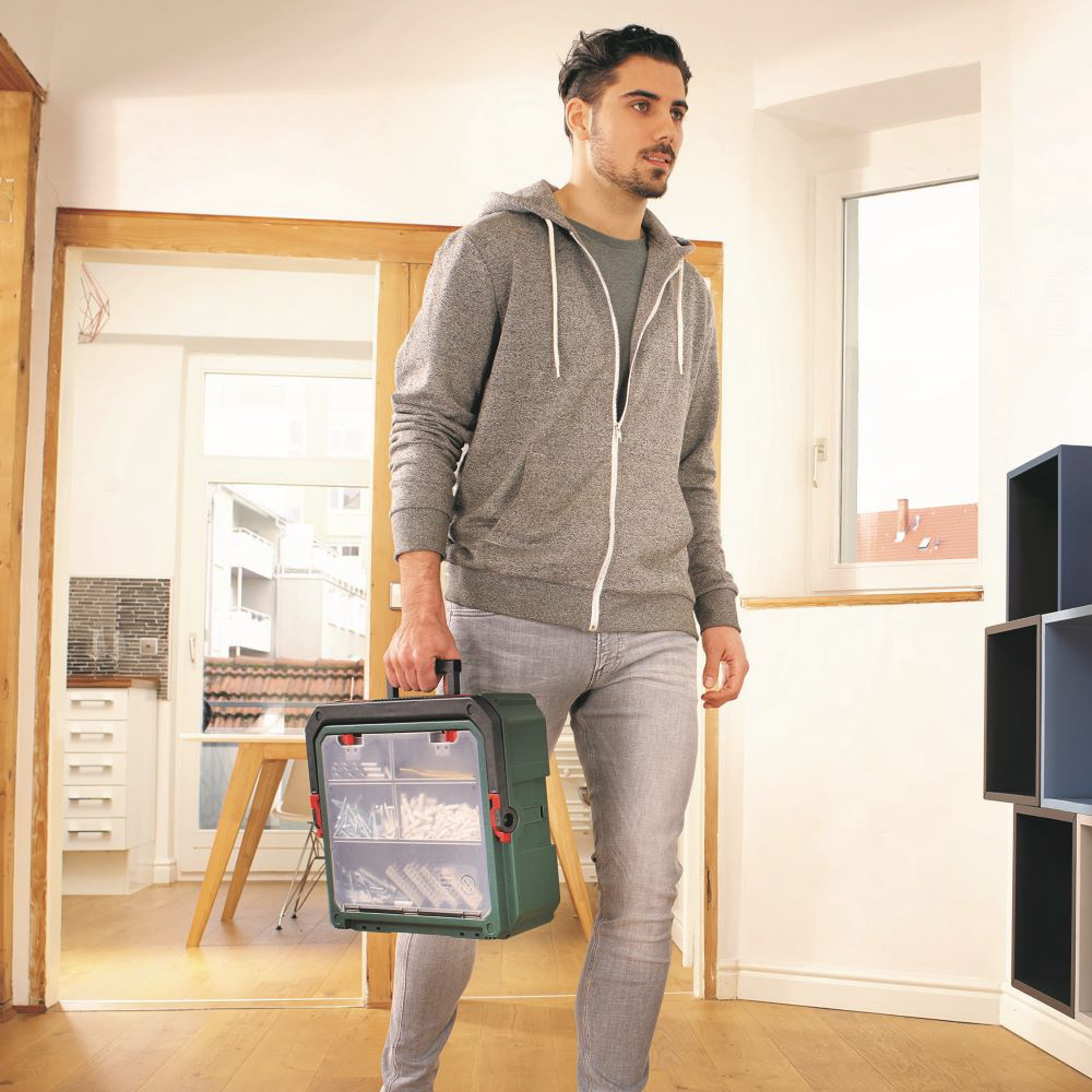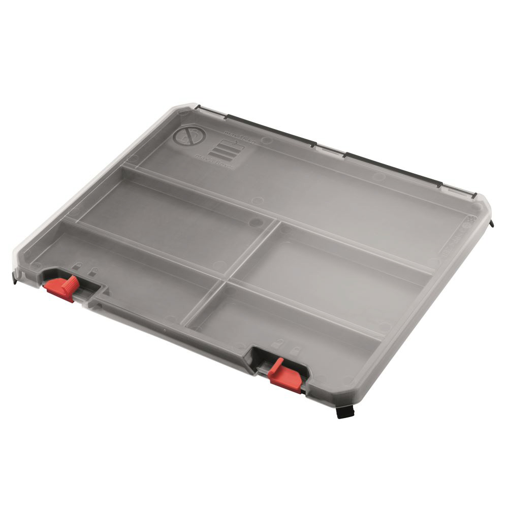 使い方いろいろ。カスタマイズ自由な、つながる収納ボックス。SYSTEMBOX-S、SYSTEMBOX-Mの上蓋に装着して細かなものを分類するボックスです。