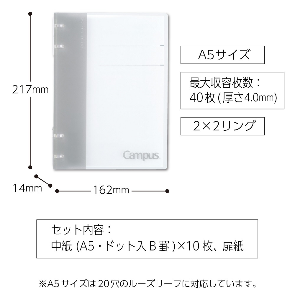 | 商品名 | ノートのように使えるバインダー [A5] Campus(キャンパス) グレー NP134M |