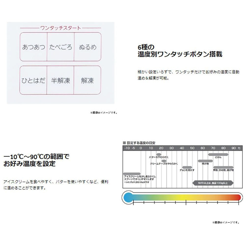 細かい設定いらずで、ワンタッチだけでお好みの温度に自動温め&解凍が可能。