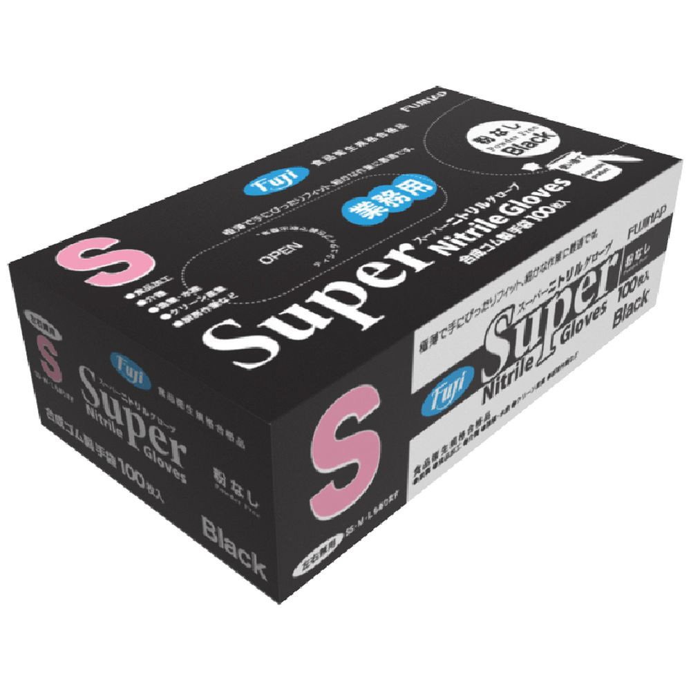 フジ スーパーニトリルグローブ粉無 ブラック 100枚入 S 36771