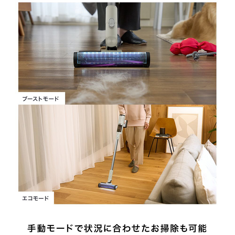 フロアセンサーがフローリングやカーペットなど床材に合わせてブラシの回転速度を自動調整することで、最適な状態でお掃除ができます。