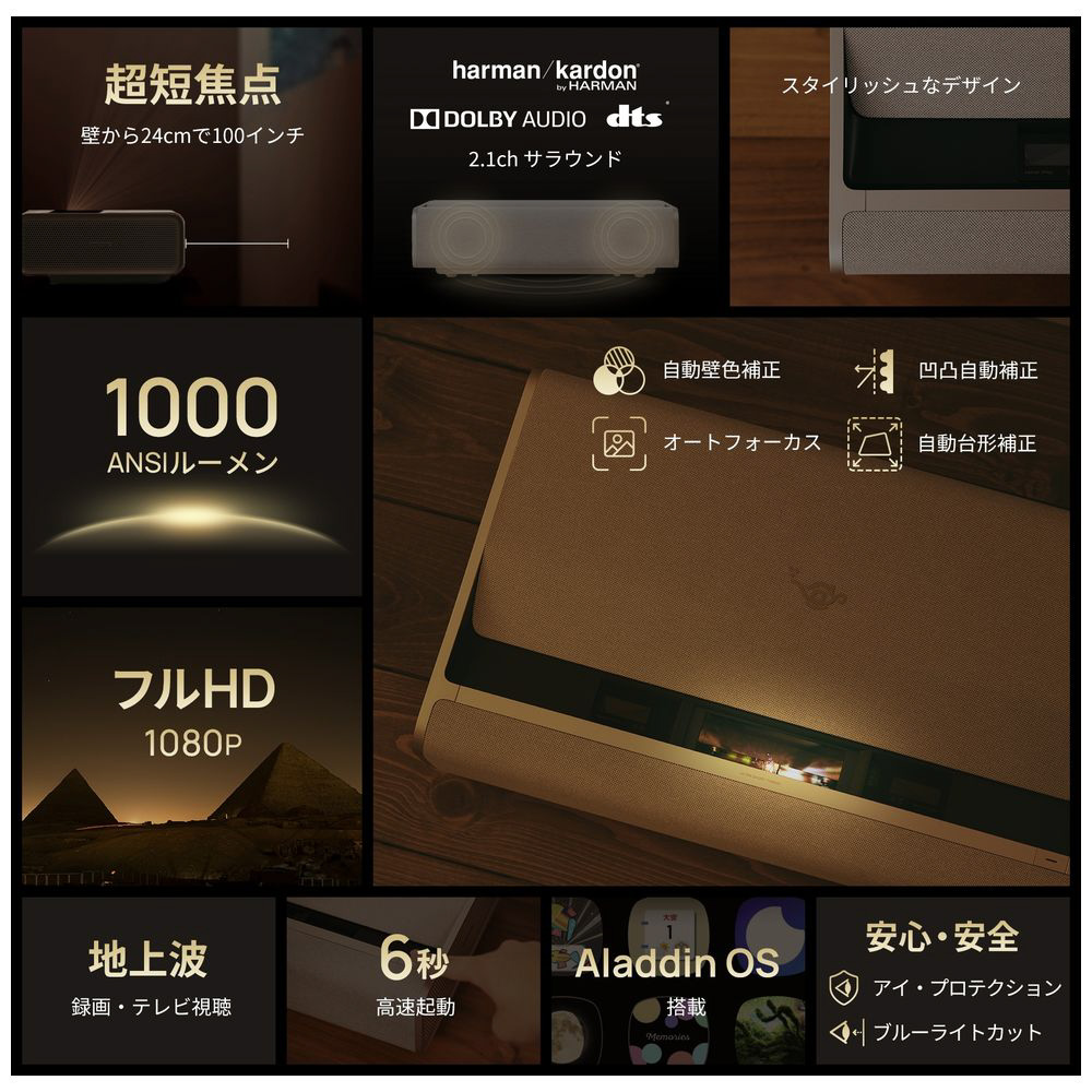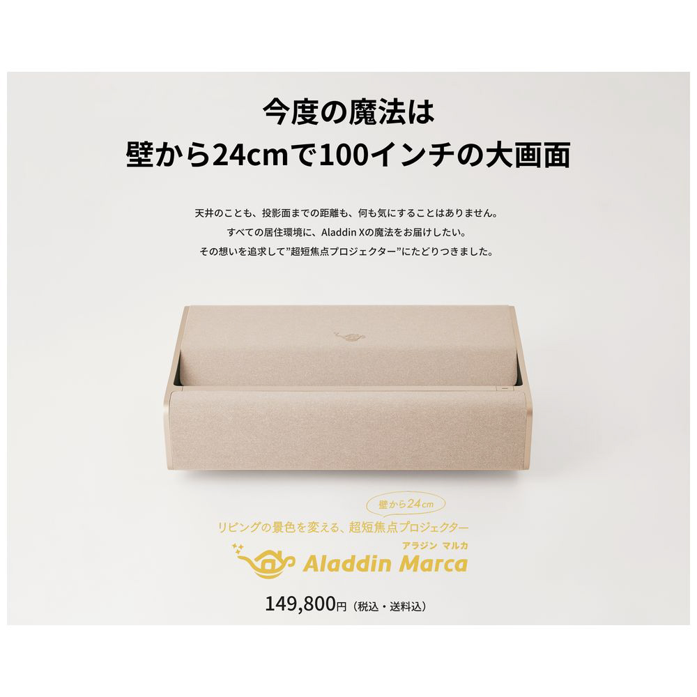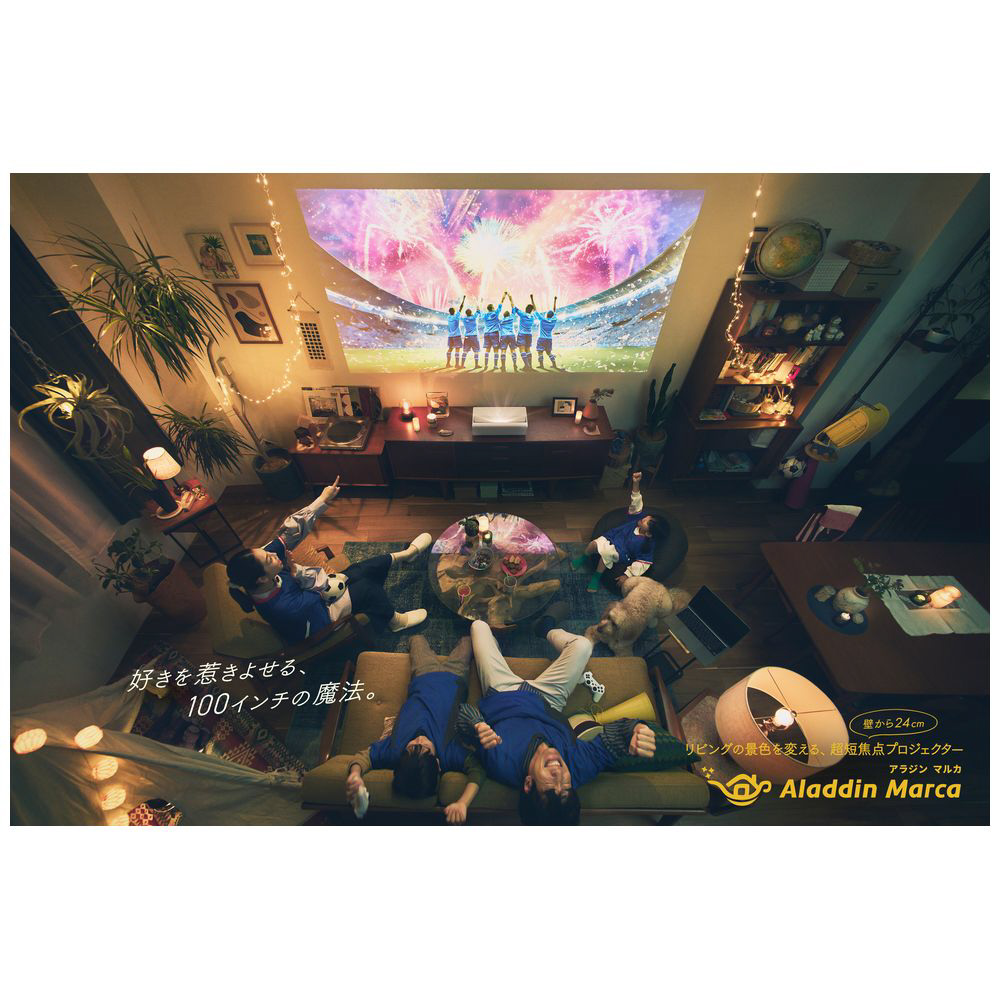リビングを超える超短焦点プロジェクターAladdin Marca、好きを惹き寄せる、100インチの魔法