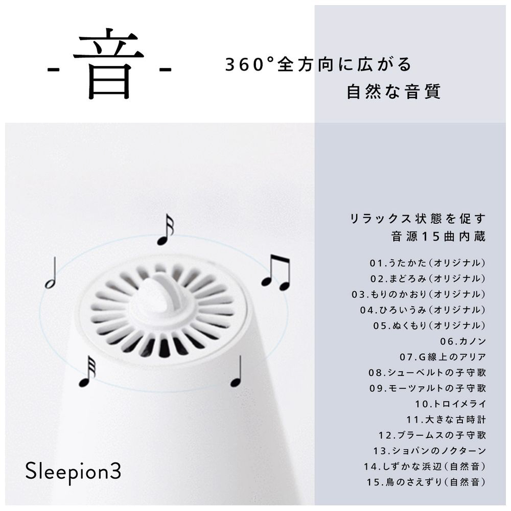入眠に最適な音源を内蔵 「Sleepion(スリーピオン)」や「Sleepion(スリーピオン)2」で実績のあるオリジナル音源に加え、一度は聴いたことのあるクラシック曲や自然音を新たに搭載。