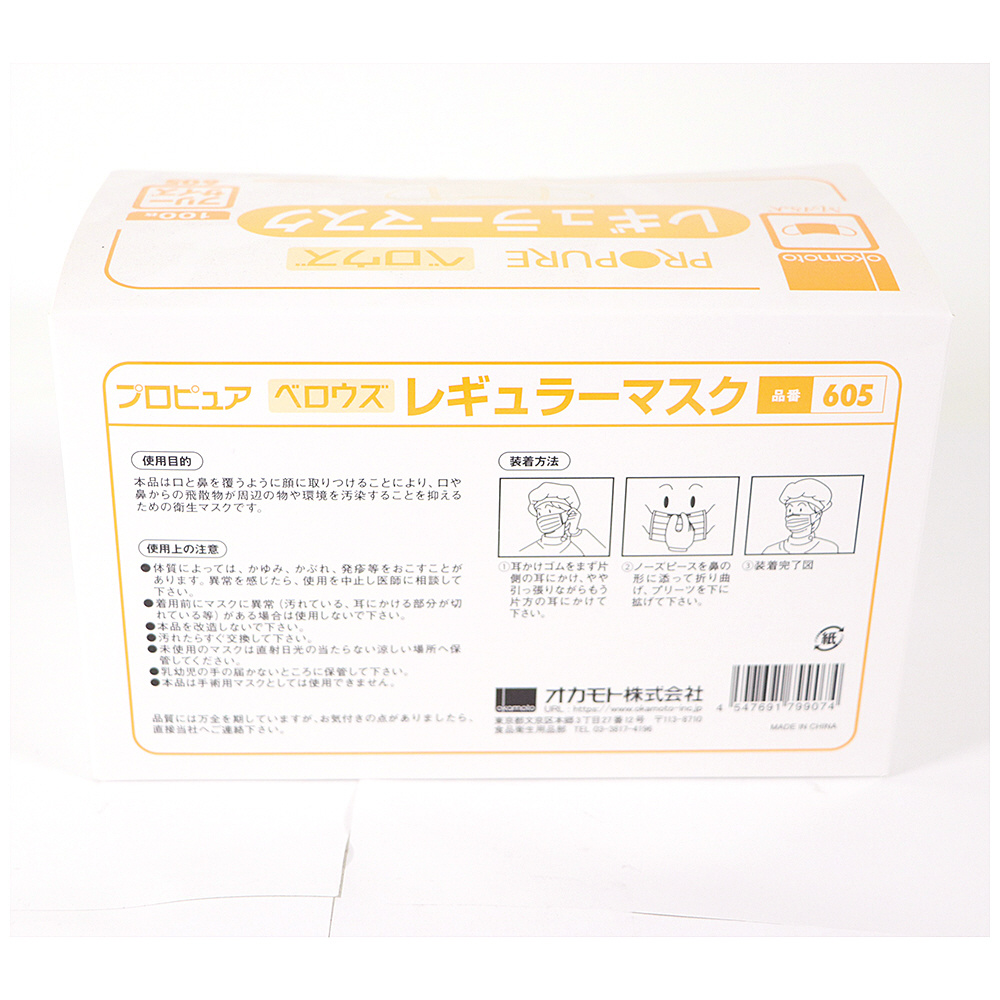| 商品名 | オカモト 605 ベロウズレギュラーマスク(フリーサイズ) 100入 |
