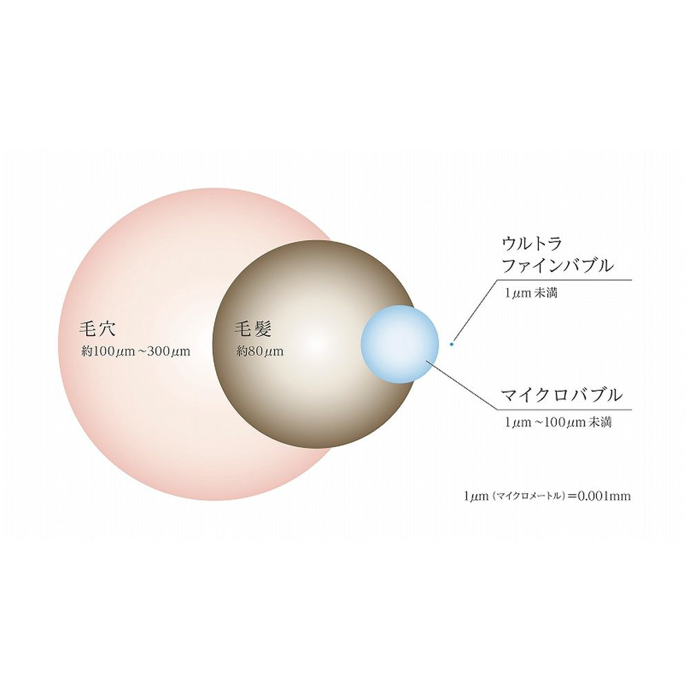全身を包みこむ2つの泡、ウルトラファインバブルとマイクロバブルがやさしく汚れを落とし、心地よく温め、うるおいを与える。