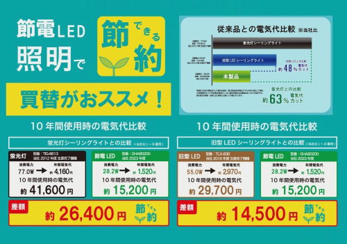 業界トップクラスの高効率・省エネシーリングライト