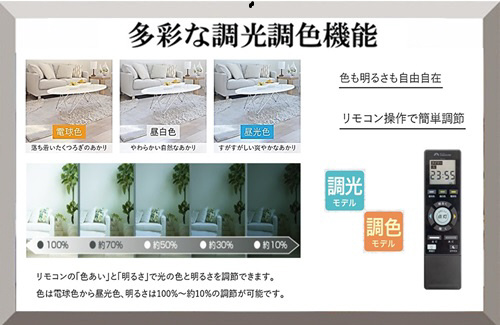 | 仕様2 | 調色範囲 6500K (昼光色)〜2700K (電球色) |