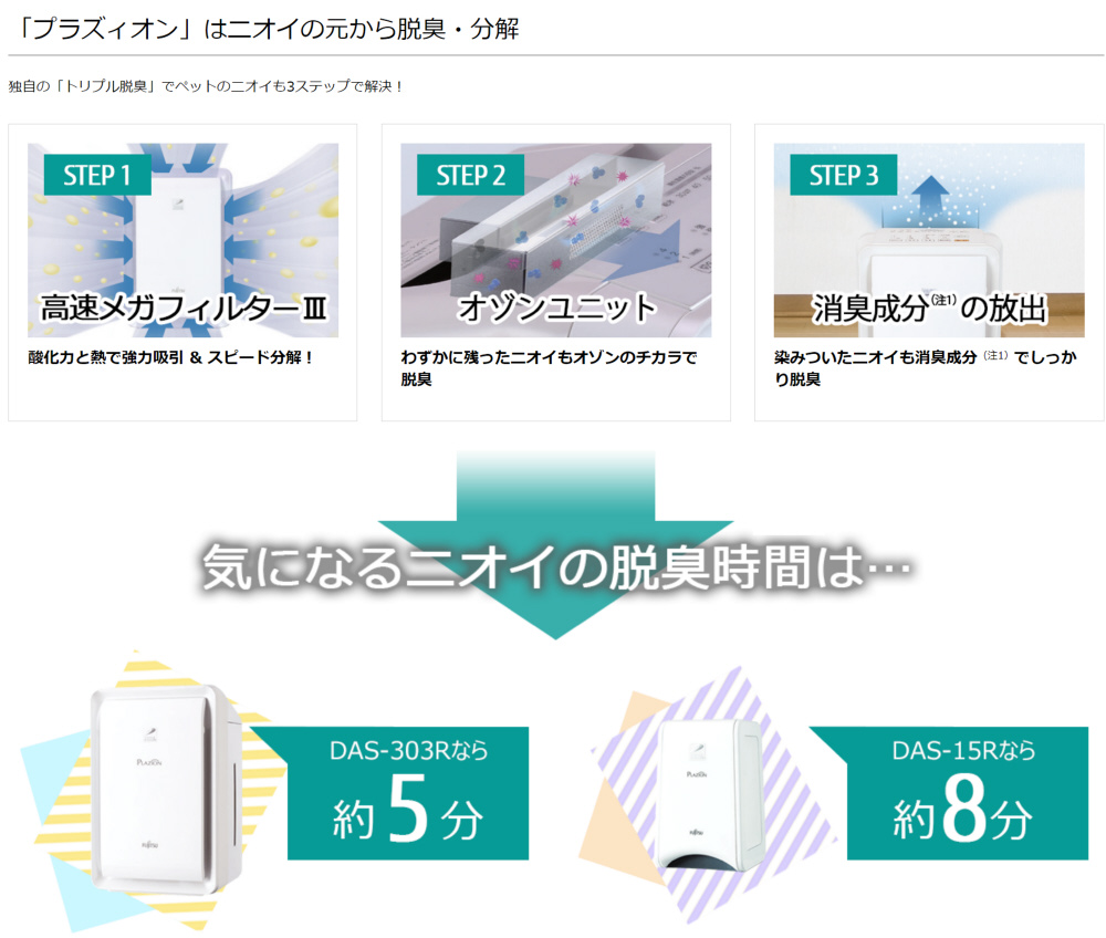 ペットをはじめとする様々なニオイに。独自の「トリプル脱臭」。