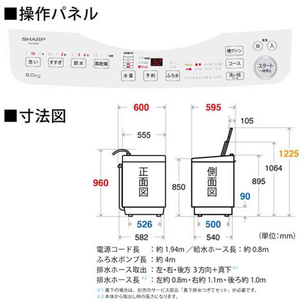 全自動洗濯機 シルバー系 ES-GV8G-S [洗濯8.0kg /簡易乾燥(送風機能) /上開き]【生産完了品】