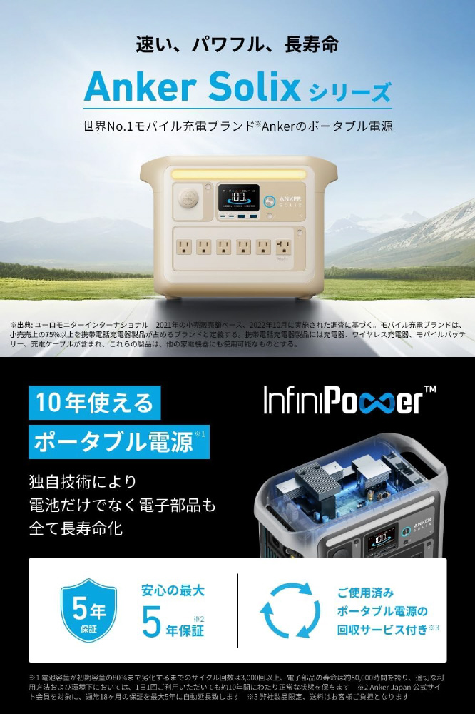 ポータブル電源 Solix C1000 Portable Power Station ベージュ A1761521 [リン酸鉄リチウムイオン電池 /11出力 /AC充電・ソーラー(別売) /USB Power Delivery対応]
