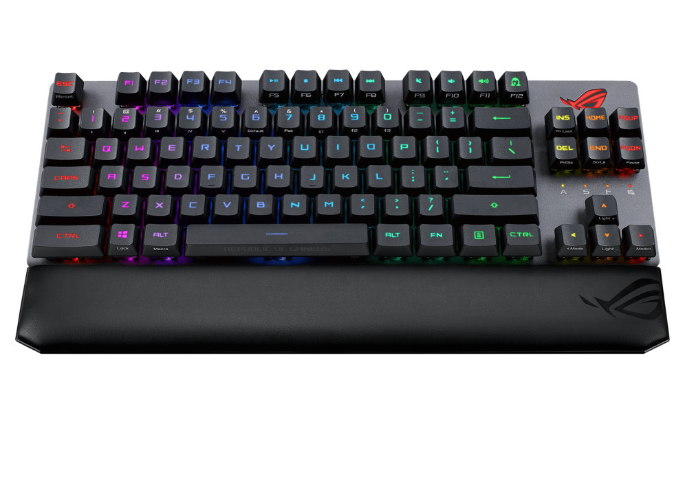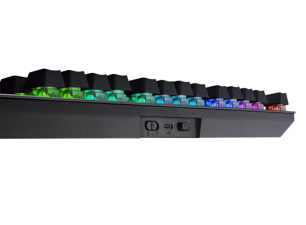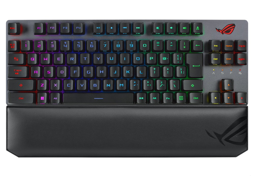 トライモード接続、ROG RX光学メカニカルスイッチ、幅広のCtrlキー、Aura Sync RGB、磁気リストレスト、合金トッププレート