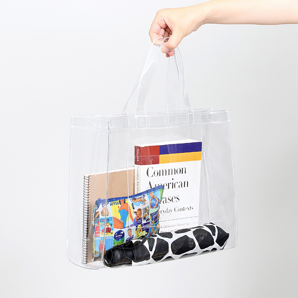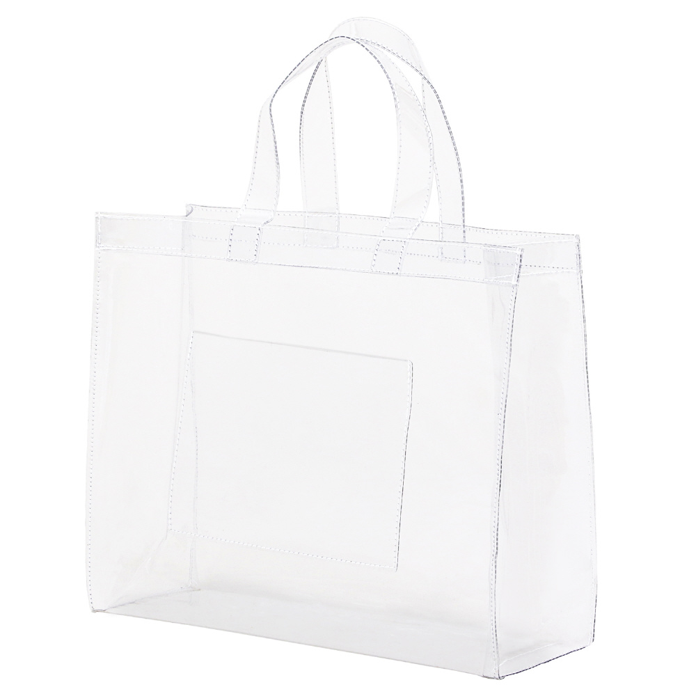 中身が一目で分かり、しっかりと縫製された丈夫な透明のビニールバッグ