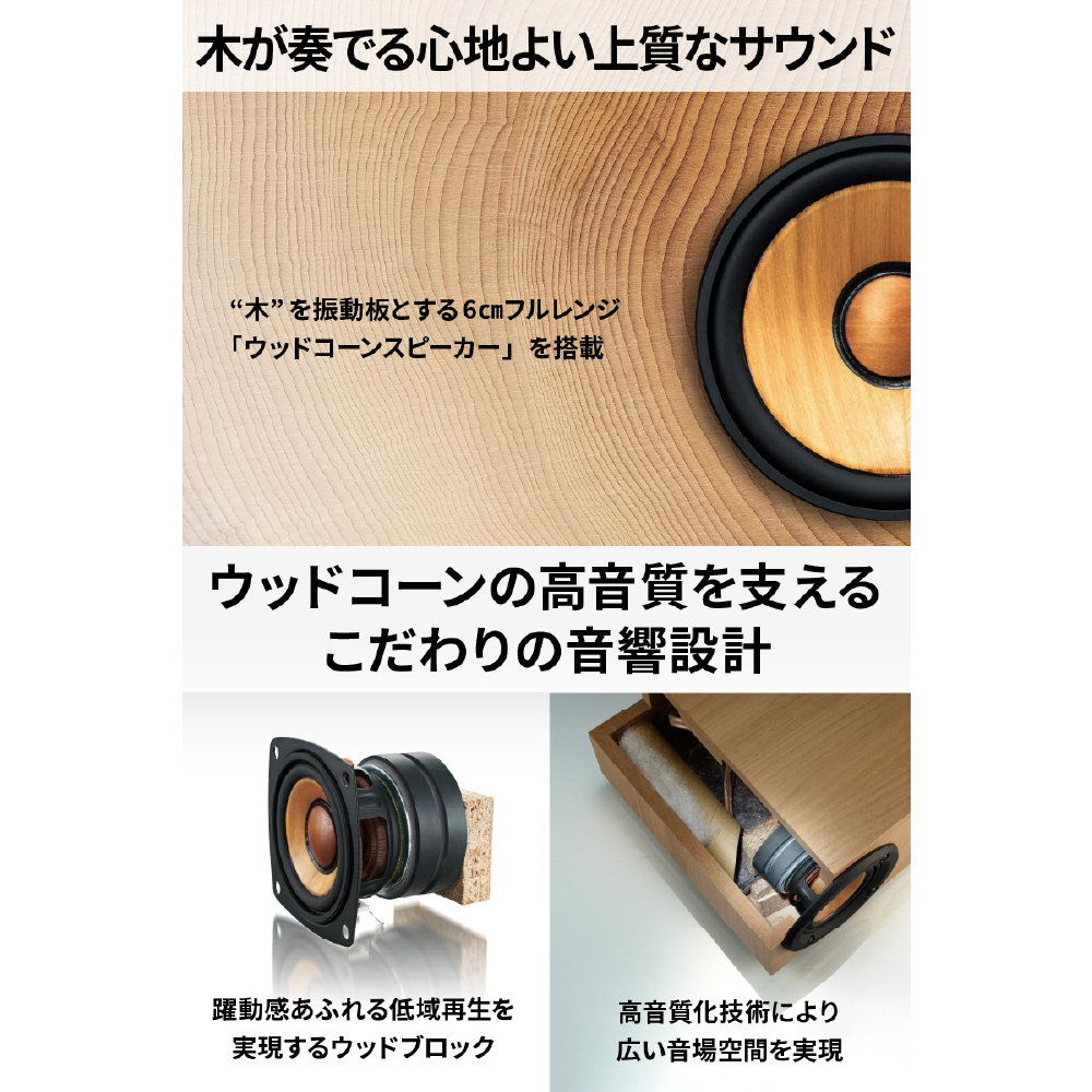 木が奏でる美しい響きを実現する、新開発 6cm フルレンジ「ウッドコーンスピーカー」を搭載