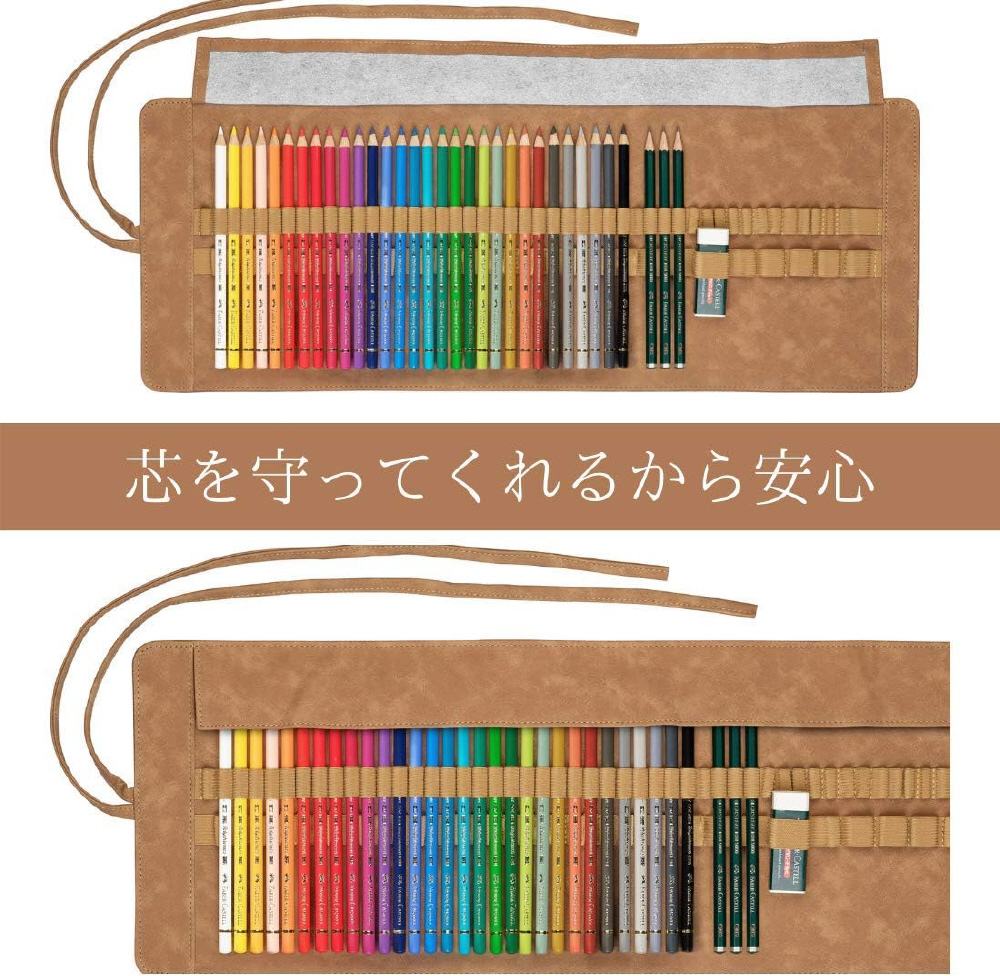 アウトドアスケッチなど、持ち運び便利なペンシルロール入りの30色セットです。