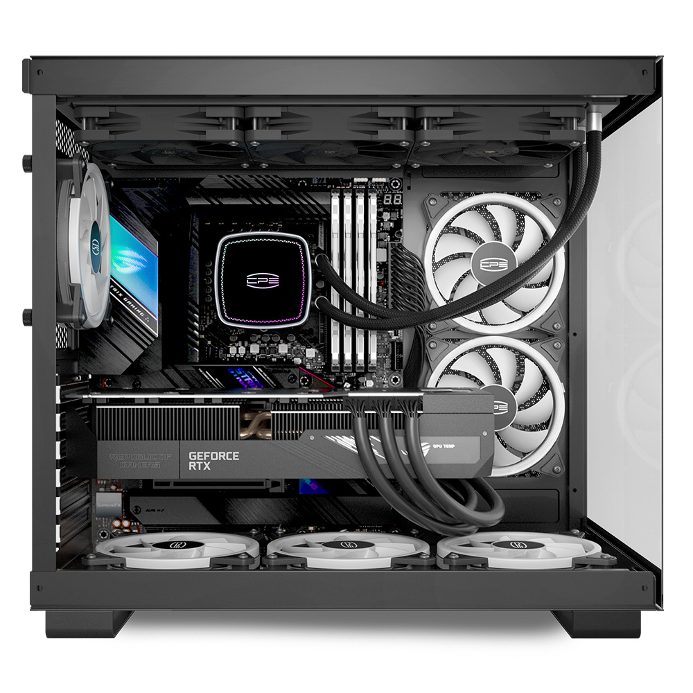 360mm水冷システムと最大9つのファンマウントポジションをサポート。