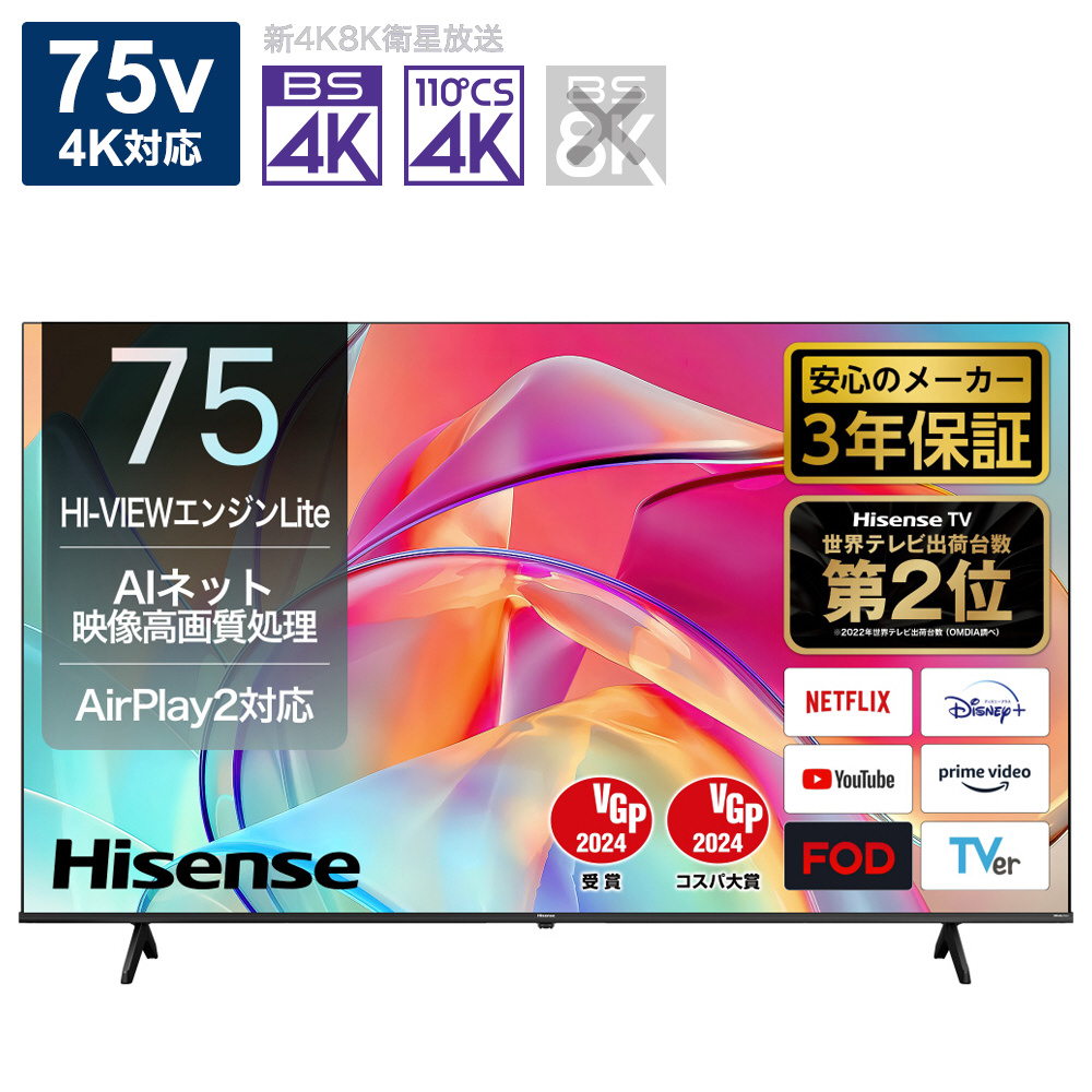 | 商品名 | 液晶テレビ 75E6K [75V型 /Bluetooth対応 /4K対応 /BS・CS 4Kチューナー内蔵 /YouTube対応] |