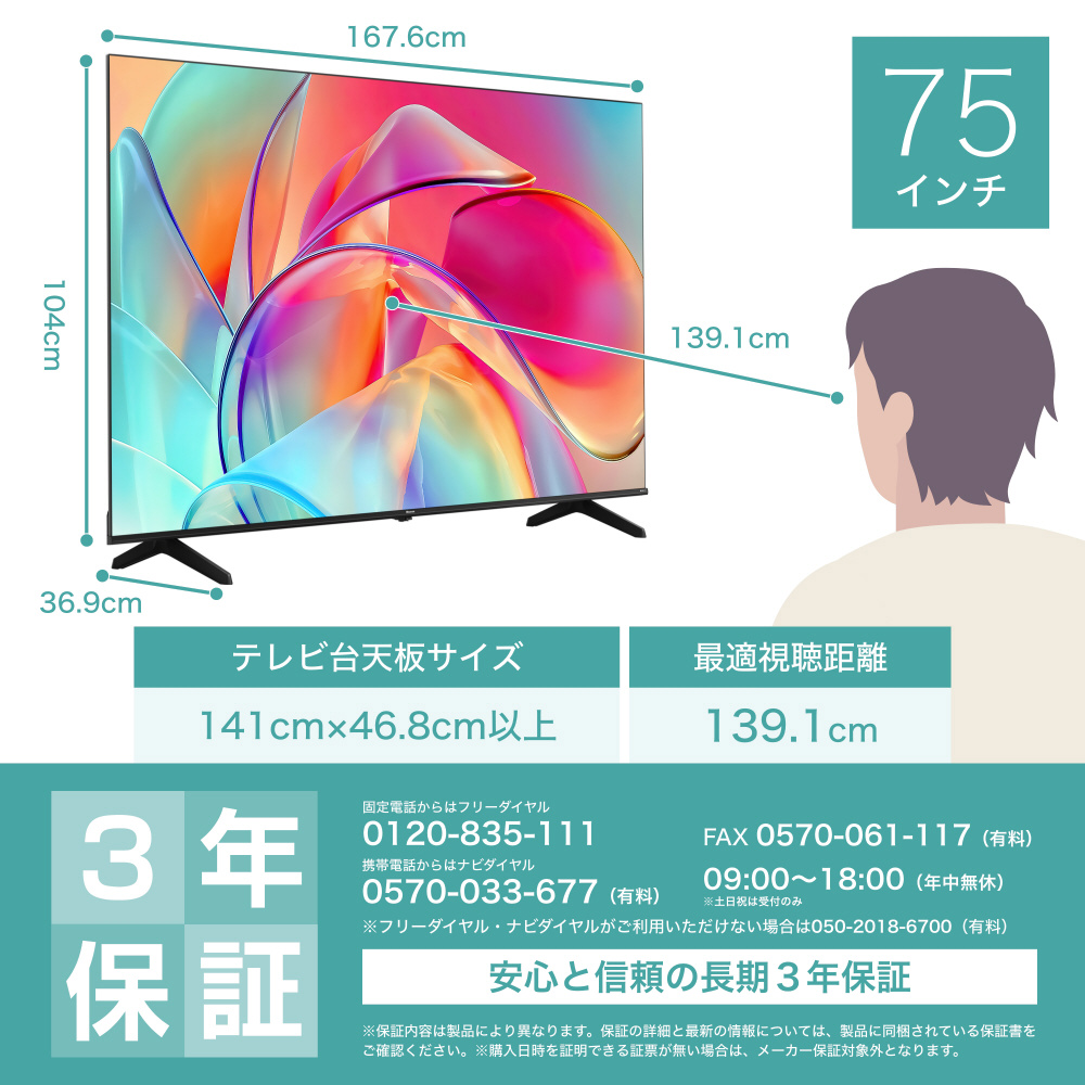 液晶テレビ 75E6K [75V型 /Bluetooth対応 /4K対応 /BS・CS 4Kチューナー内蔵 /YouTube対応]