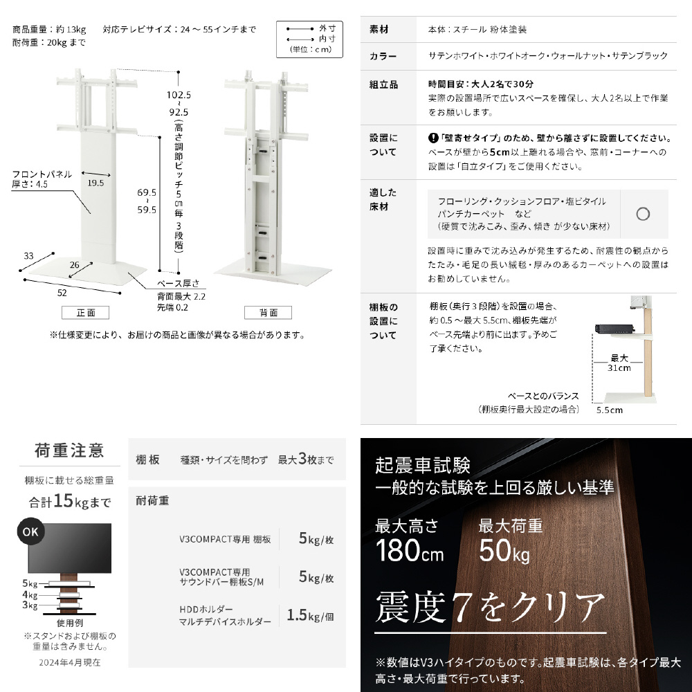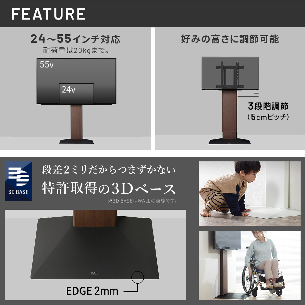 24〜55V型対応 壁寄せテレビスタンド WALL V3COMPACT ホワイトオーク WLTVR5232 【852】