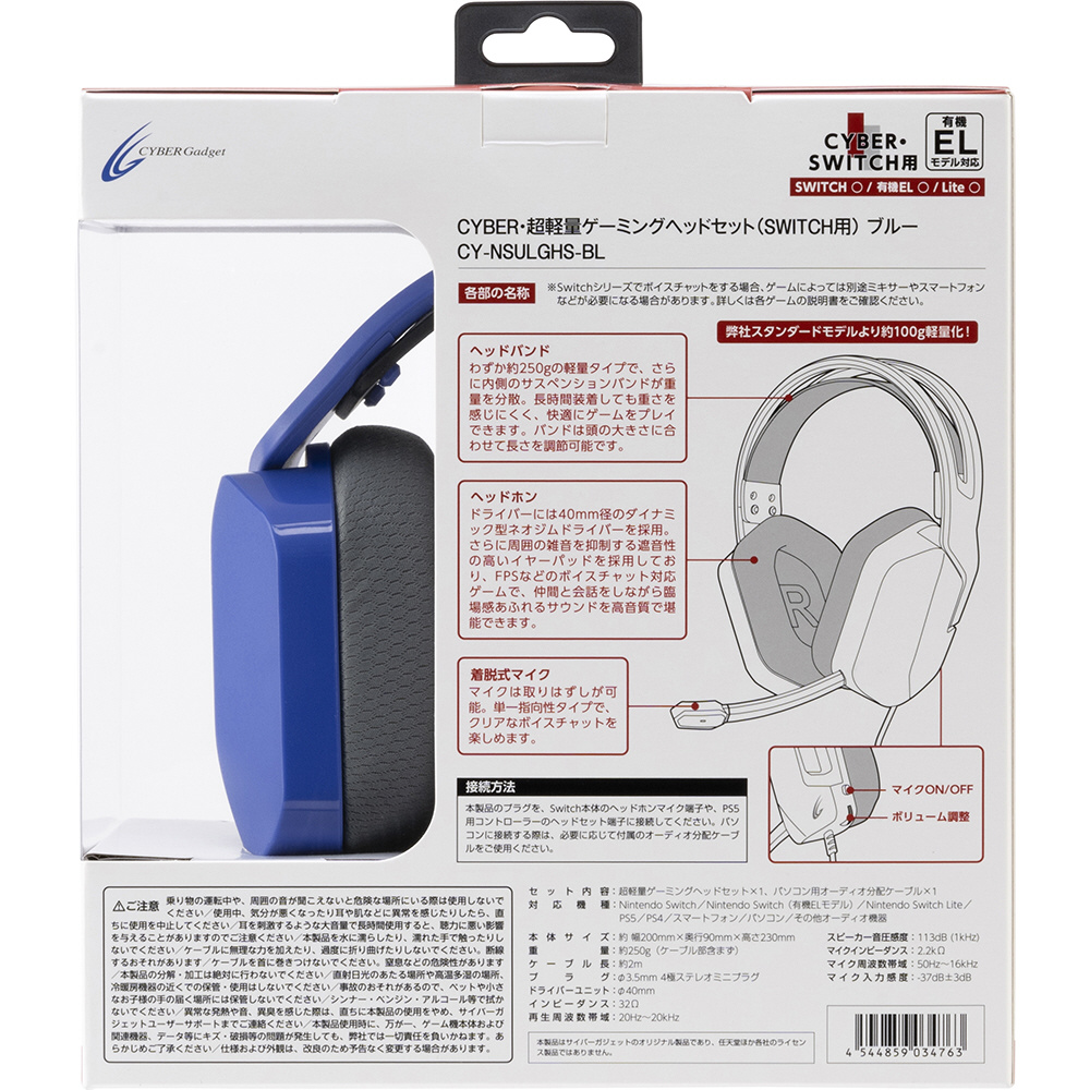 SWITCH用超軽量ゲーミングヘッドセット ブルー CY-NSULGHS-BL