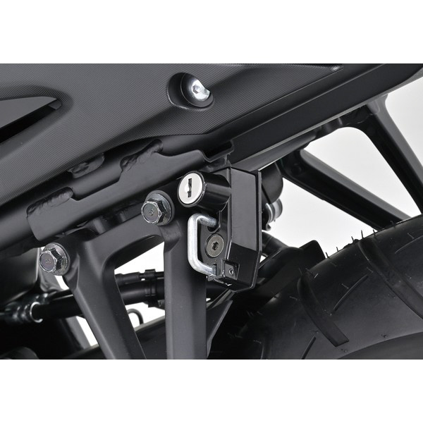 左側タンデムステップホルダーと共締めで装着します。(カギ2本付属)