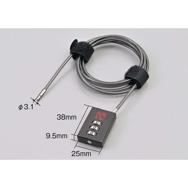 ●ワイヤー先端径 3.1mm ワイヤー長 1300mm、本体H38×W25×D9.5(mm)※ダイヤル部除く