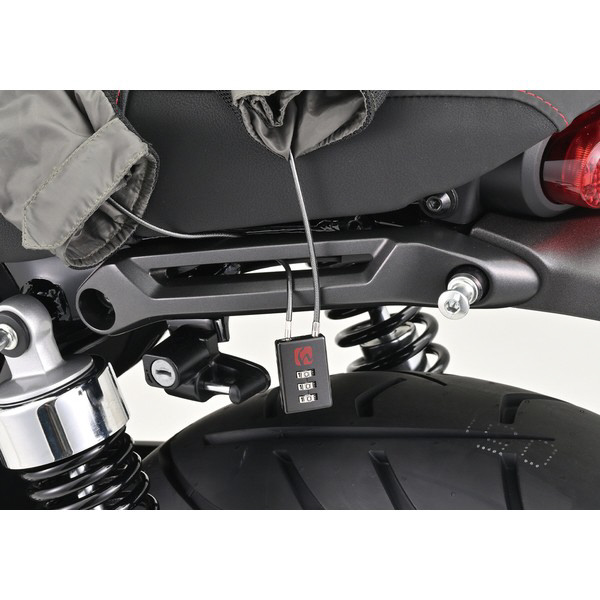 ヘルメットやバッグのイタズラ防止に。ヘンリービギンズバッグのファスナー穴に挿入できます。