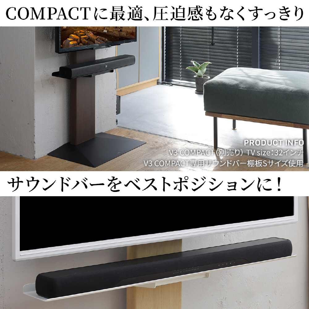 スマート&スモールなテレビスタンド「WALL V3COMPACT/mini」対応のサウンドバー棚板オプション。より臨場感のあるサウンドが楽しめるサウンドバー用の棚板です。