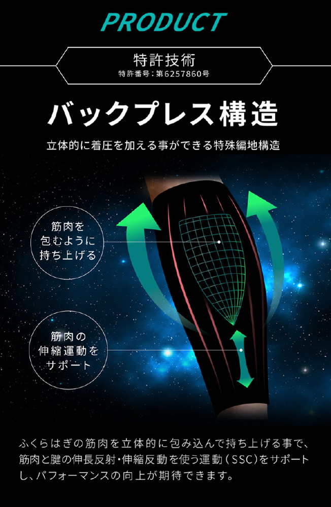 ※サポーター部位によりバックプレスとハムカムテーピング構造の採用が異なります。