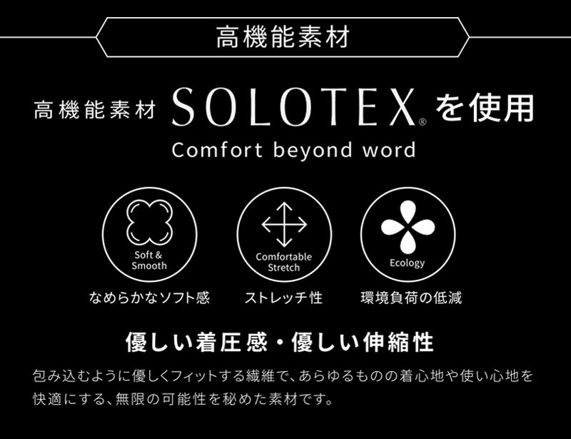 バックプレス構造とハニカムテーピング構造の特許技術と高機能素材「SOLOTEX(ソロテックス)」を採用。