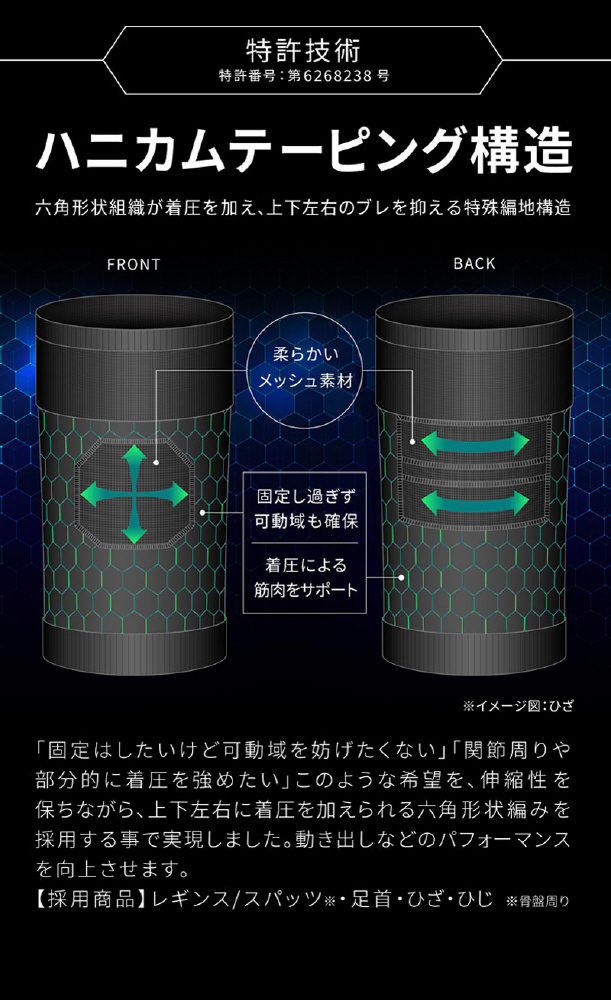 ※サポーター部位によりバックプレスとハムカムテーピング構造の採用が異なります。