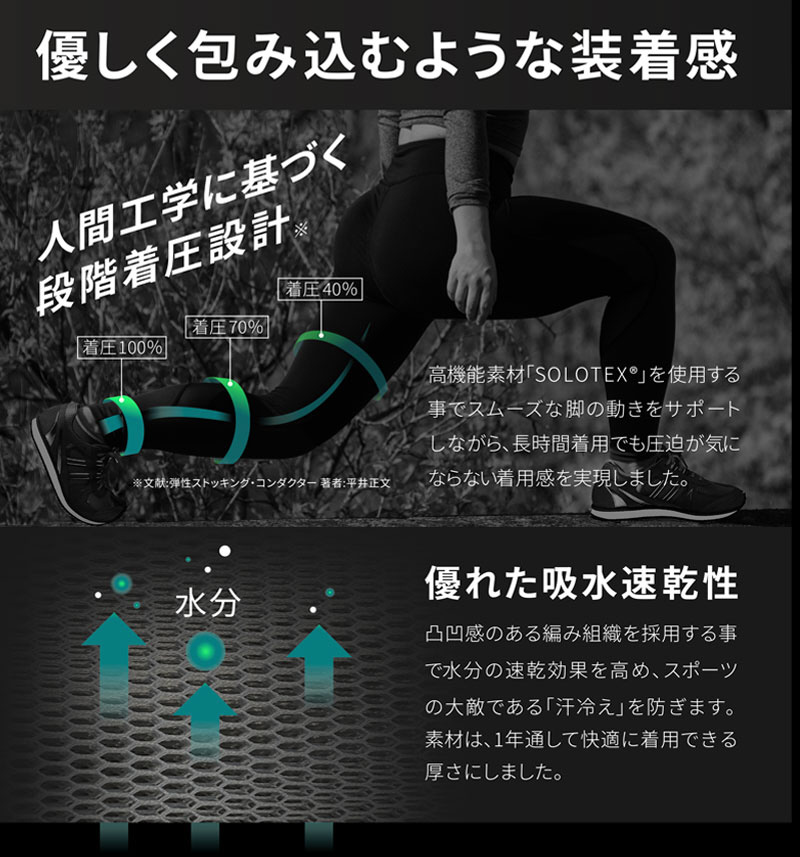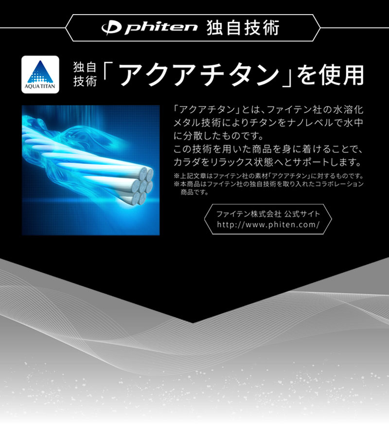 帝人フロンティアの高性能素材・特許技術とファイテンの独自技術「アクアチタン」を採用。