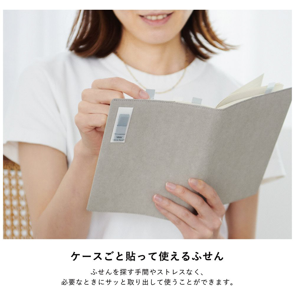ケースごと本や手帳に貼って持ち運べ、“ふせんがいつもそばにある”状態をつくる。