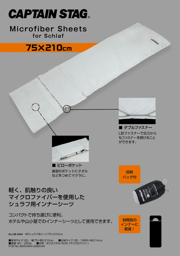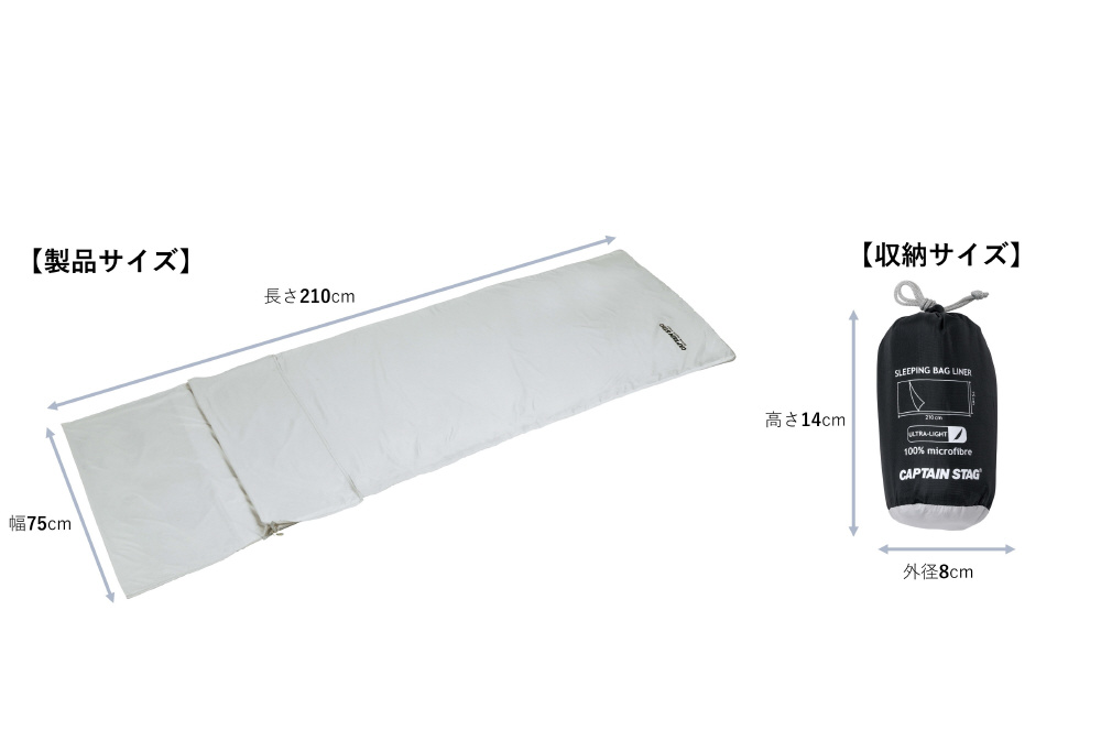 軽く、肌触りの良いマイクロファイバーを使用したシュラフ用インナーシーツ。