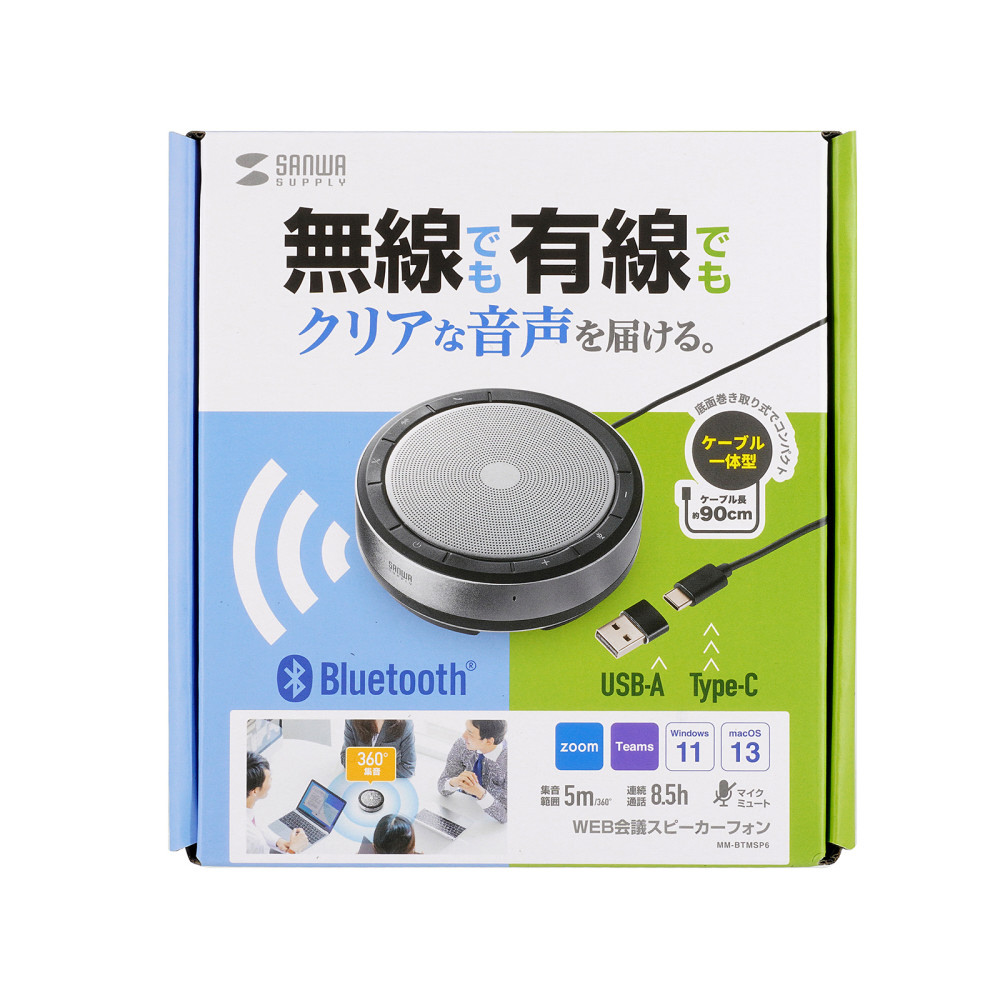 MM-BTMSP6 スピーカーフォン Bluetooth+USB-C・USB-A接続 (Mac/Windows11対応) [USB・充電式]