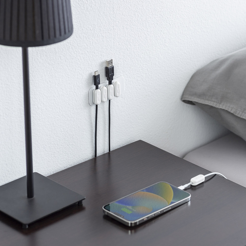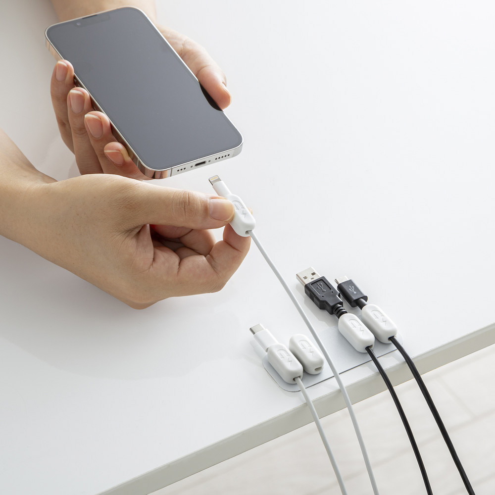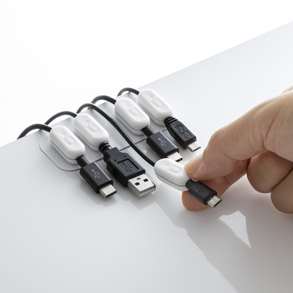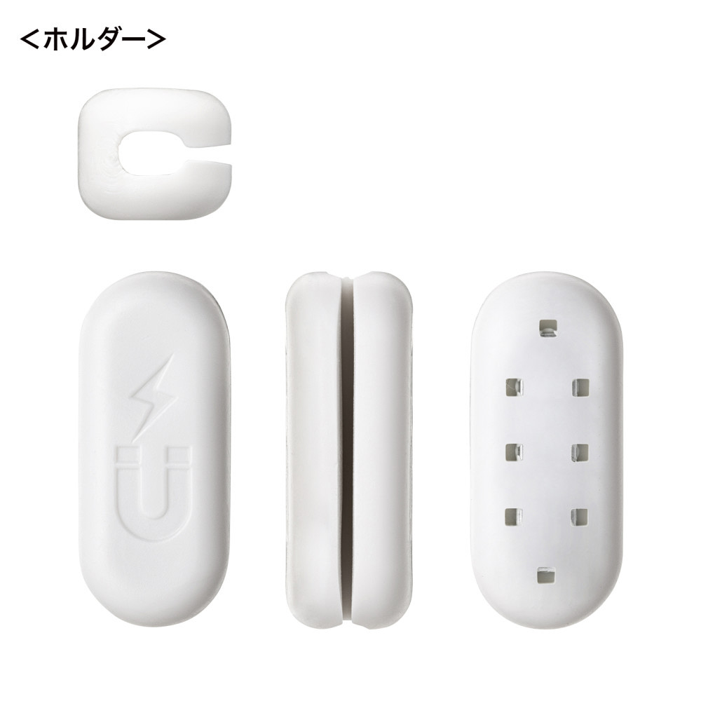 マグネット付きのケーブルホルダー。両面テープで強力固定が可能。