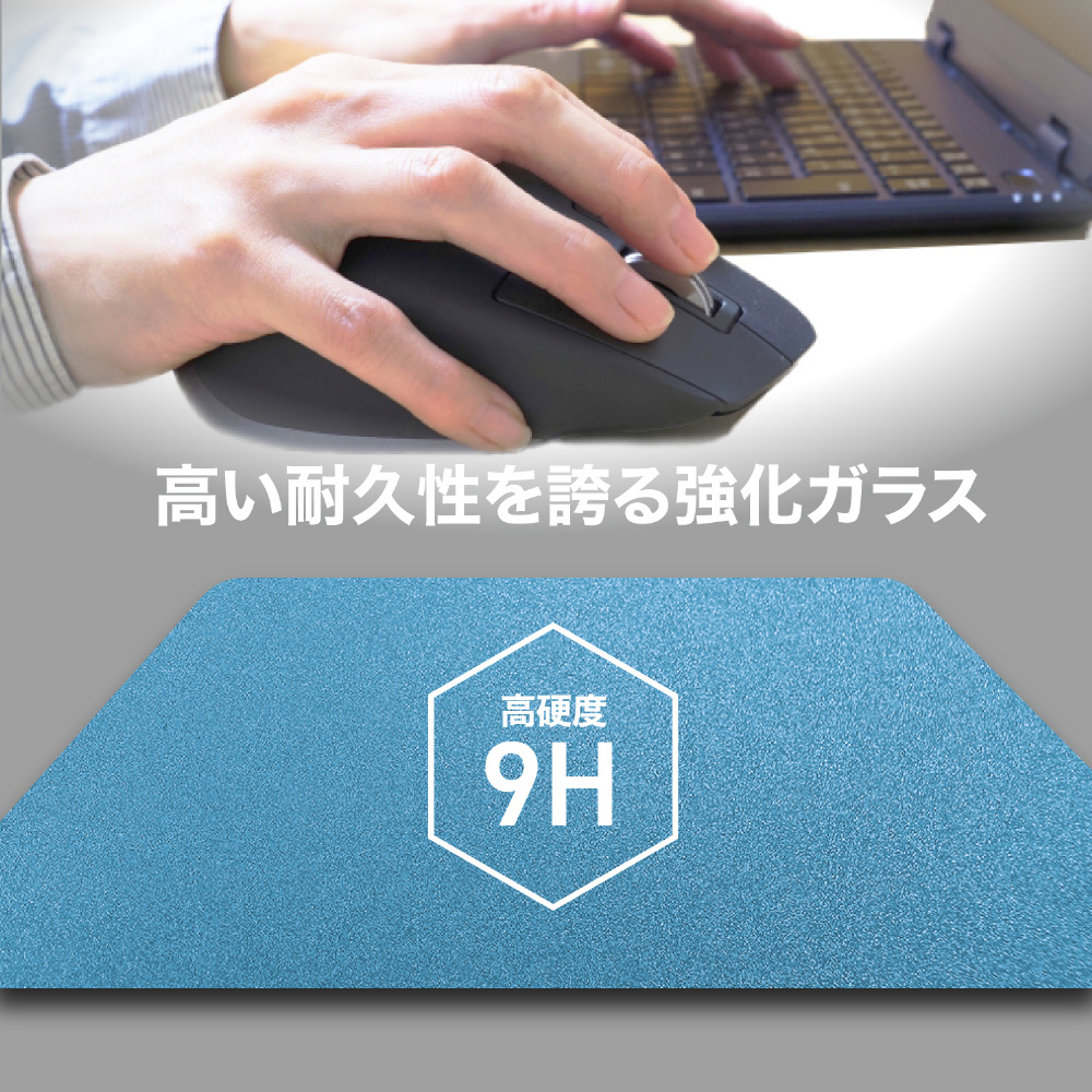 タフな耐久性と 簡単メンテナンス。特殊表面処理を施した、滑らかなガラス製マウスパッド。
